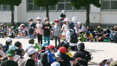 青空の下、原田小学校の全員で楽しいひとときを過ごしました!(A.A)