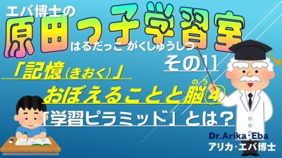 ところで、給食時間に放送中の「エバ博士の原田っ子学習室」ですが、「エバ博士の原田っ子学習室11記憶~覚えることと脳その4『学習ピラミッドとは?』」を本日からYoutubeで動画配信しましたのでご覧ください。(6分間程度です)
