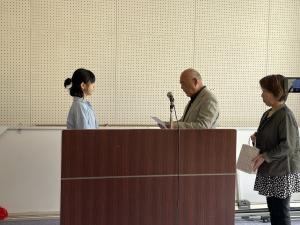 原田小校区コミュニティーによる防災のぼり旗の表彰がありました。