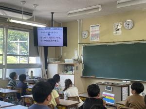 TV放送で福岡大空襲について学びました。その後,各学級で読み物資料や動画を使って,平和について考えたり,自分たちにできることを交流したりしました。