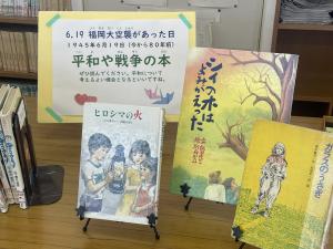 図書室には平和や戦争に関する本のコーナーを特設しています。
