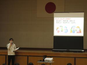 歓迎集会の後は、歓迎遠足でした。場所は恒例の平成の森公園です。出発前に、注意事項を確認し、学年毎に出発していきました。