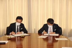 ▲協定締結式(左 九州電力株式会社 福岡支店長 上妻正典様)