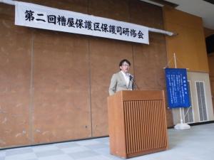 今回は、福岡保護観察所 美山 美紀(みやま みき)様を講師に迎え、「面接・接触確保に向けた工夫・留意点について」をテーマに研修が行われました。