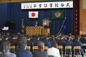 義務教育9年間の全課程を修了し,たくましく,そして,堂々と胸を張って卒業証書を手にする三年生の晴れ晴れとした姿が大変印象に残りました。