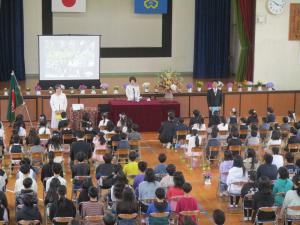式の中では、「入学おめでとうございます」と言われると、「ありがとうございます」と、しっかりと言える素晴らしい一年生でした。