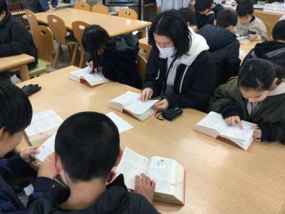 参加した子どもたちは、辞書を使って、お題に合う言葉を探します。