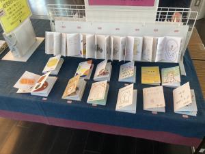 2月いっぱい展示されている3年生制作の絵本。たくさんの方に見ていただいているようです。この日も来館者が手に取って見ようとされていました。みなさんは見に行かれましたか。ぜひ、宇美町図書館に足を運んで、絵本を読んでくださいね。