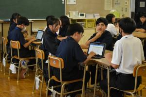 本日は、1年生帰りの会の様子を紹介します。まず、自学タイムにおいて本日授業で学んだポイントをノートに記載し、家庭学習に取り組む下準備をする。次に1時間目からの授業について担当者から報告。さらに、各班で1日の振り返りを行う。最後に担任の先生より生徒に対し気になっていることなどについて話し、帰りの会終了。 今日の自分より明日の自分 がんばれ宇美東中生!