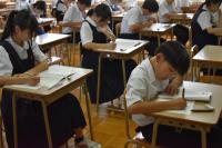 本日、5時間目に英検IBAテストを実施しました。このテストの目的は、日々の学習の成果の確認や、自分の得意不得意を把握し、今後の学習に生かすことです。生徒たちは、最後まで一生懸命に問題を解いていました。 地道にコツコツ 頑張れ宇美東中生!