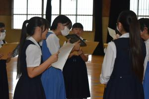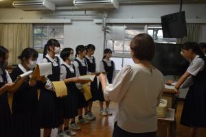 令和7年度の合唱コンクールのスローガンは「一心和音」です。生徒会役員が、合唱コンクールの練習をとおして、各学級が一丸となってともに素晴らしい曲を奏でてほしいという願いを込めて設定しています。昨日より、10月17日の合唱コンクール本番に向けて各学級の練習が始まりました。どの学級も学級目標やスローガンを達成できるように取り組んでいました。まだ始まったばかりです。これからの成長が楽しみです。 努力の上に花が咲く! がんばれ宇美東中生!