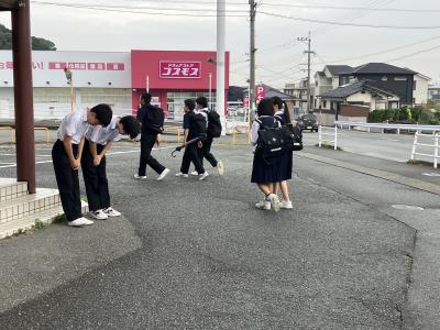 生徒会役員による朝の挨拶運動を毎日行っています。最近は、正門前だけでなく学校下の信号前でも挨拶運動を実施しています。相手の目をみて、「おはようございます」と元気よく爽やかに挨拶をする姿が印象的です。生徒会役員による活動で、清々しい一日がスタートできていると思います。