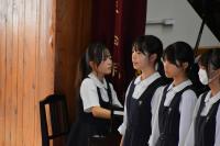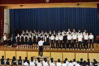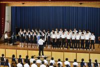 合唱コンクール本番まで、あと一週間前になりました。今日は、全学年でリハーサルを行いました。生徒たちは、初めて他学級の合唱を聴き、合唱する側も聴く側もいい緊張感の中で取り組むことができました。このリハーサルを受け生徒たちの意欲がさらに高まったように感じました。