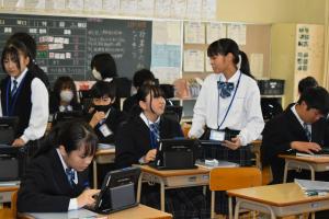 本日、8日(土曜日)「教育の日」に、各学年1時間目から3時間目まで自由に授業参観を実施しました。保護者の方々の参観もあり、生徒たちはいつもと少し違う表情(意欲的)で授業に取り組んでいました。保護者の皆さんにおかれましては、ご多用な中、本校の参観に多数の来場いただき、ありがとうございました。また、アンケートのご協力、ありがとうございました。