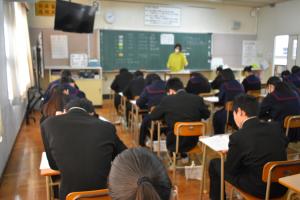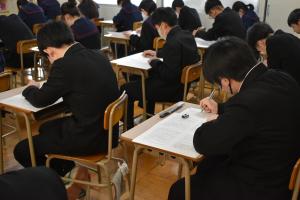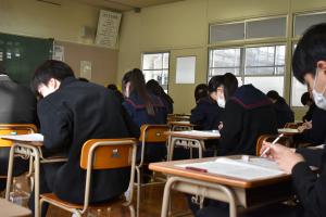 3年生は義務教育最後の学年末テストを受けました。どの生徒も3年間の集大成として、そして、受験へのステップとして一生懸命に集中して取り組んでいました。