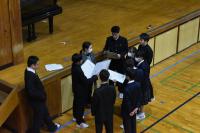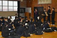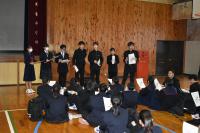 2月6日に実施される東中校区両小学校へのあいさつ運動に参加する生徒に対して、生徒会役員から心得等について説明がなされていました。
