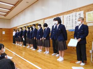 です。『輝く笑顔の花を咲かせよう』をサブスローガンとして,赤と青の2チームで競い合いながら,共に成長することができる体育会の取組となるように,生徒一人一人が精一杯取り組んでもらいたいと思います。