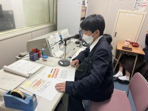 給食時間の昼の放送で、今週の火曜日に行われた宇美町の「人権啓発座談会」の内容と感想を、参加した生徒会役員が全校生徒に報告しました。