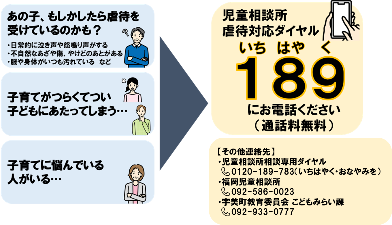相談は支援の始まりであり、あなたの1本のお電話で救われるこどもがいます。少しでも不安なこと、気がかりなことがありましたら、迷わず相談してください。